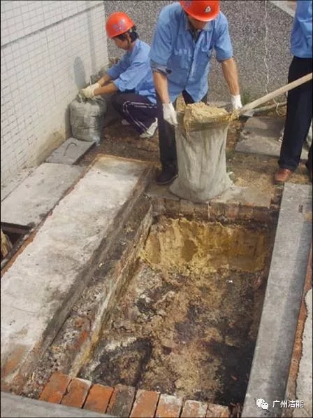 传统混泥土隔油池清理现场